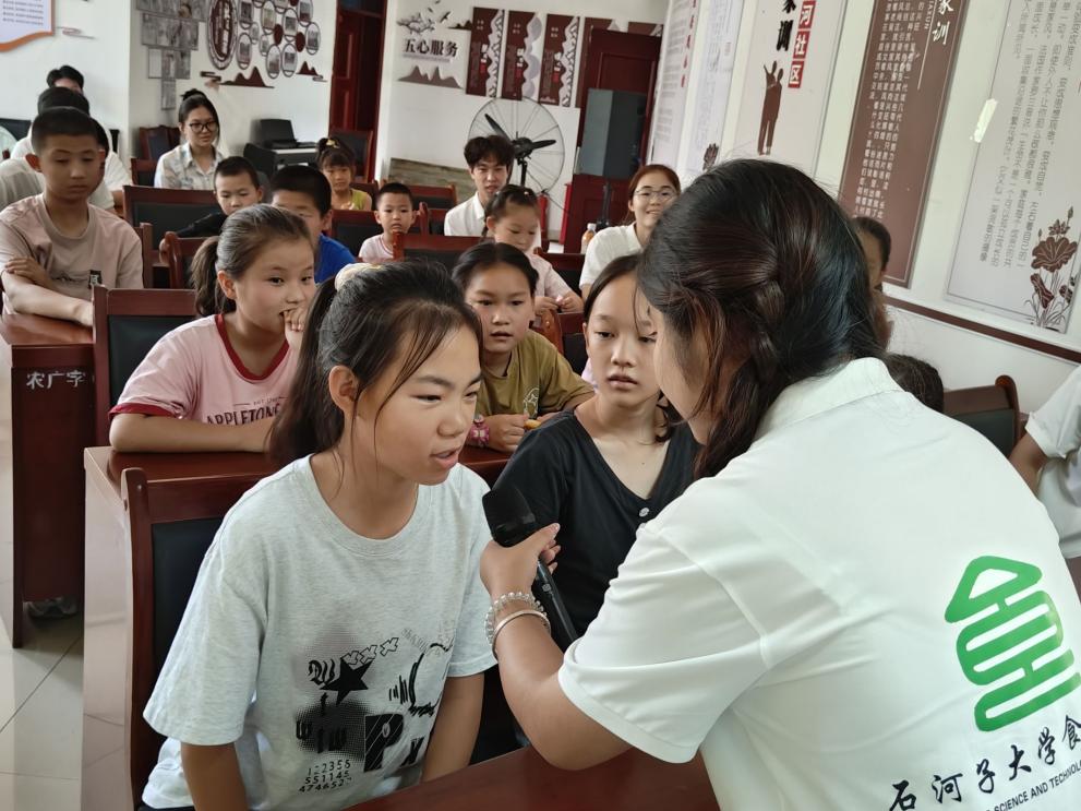 “转业时他为何选择留下?”“二十万公里巡边路有多长?”一个个问题抛向孩子们,点燃了他们的好奇心。老一辈兵团人在艰苦中守护边疆的场景,通过实践团成员杜英姿的讲解演绎变得鲜活,孩子们眼中泛出敬佩的光。这些故事中,有老一辈兵团人在艰苦环境中的坚韧不拔,有他们对国家和人民的赤诚热爱,更有“热爱祖国、无私奉献、艰苦创业、开拓进取”的兵团精神内核。孩子们听得认真,也被故事中的情节打动。