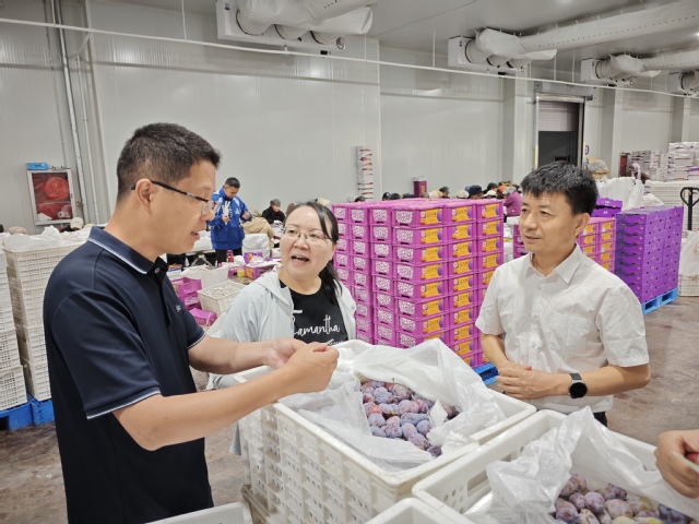 调研期间,团队实地考察了天山花海公司的西梅分选线和保鲜库设施。该公司现有两条机械分选线,日处理能力达300吨,大幅提高了生产效率和产品标准化水平。曹建康教授针对西梅采后易失水、软化等常见问题,提出了一系列切实可行的解决方案。双方还就贮藏技术、冷库管理及人才培训等方面达成合作共识,未来将进一步加强协作,共同推进西梅产业提质增效。