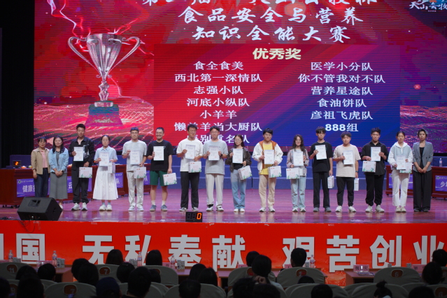 9月7日,石河子大学北区大会堂灯光如昼、掌声雷动,由石河子大学教务处主办,新疆天山云牧乳业有限责任公司、食品学院承办的第二届“天山云牧杯”食品安全与营养知识全能大赛在此迎来终极对决。从线上万人海选、实操技能沙场,到短视频创意答辩,8支“学霸战队”一路过关斩将,最终站上最高擂台,用知识与激情献上了一场“舌尖上的巅峰盛宴”。