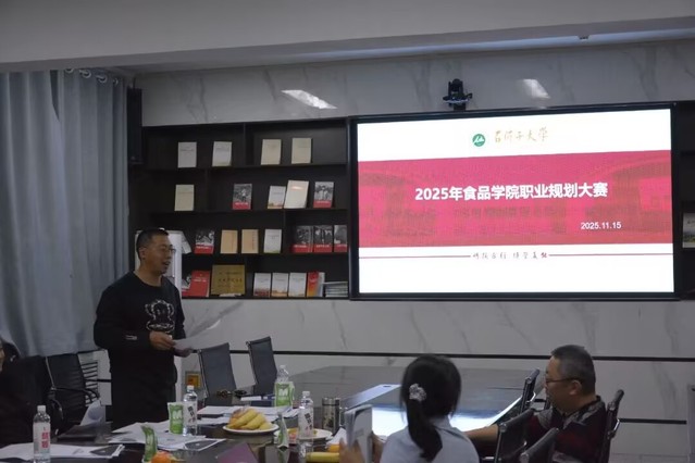 为增强大学生职业规划意识,引导大学生树立正确的成长成才观和择业就业观,指导学生通过学习实践提升综合素质和能力,11月15日,食品学院举办大学生职业规划大赛(成长赛道、就业赛道),特邀指导职规赛经验丰富的保密办主任王龙淼老师、校党委保卫部副部长张振军老师、就业办副主任雷亮老师担任评委,学院党委副书记丁成、学办主任杨珂、团委书记刘桂青一同参评。