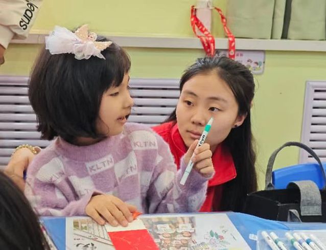 随后,志愿者们带领社区小朋友们参与了两项春日特色的手工活动。书签制作活动,孩子们将含有春天元素的图画或诗句留在书签上,同时写下对春天的美好愿望。风筝绘画活动中,小朋友们发挥无限的想象力,用五彩缤纷的颜色描绘出心中的春天。志愿者们协助调色、勾勒线条,并耐心讲解风筝背后的文化内涵,现场欢声笑语不断。